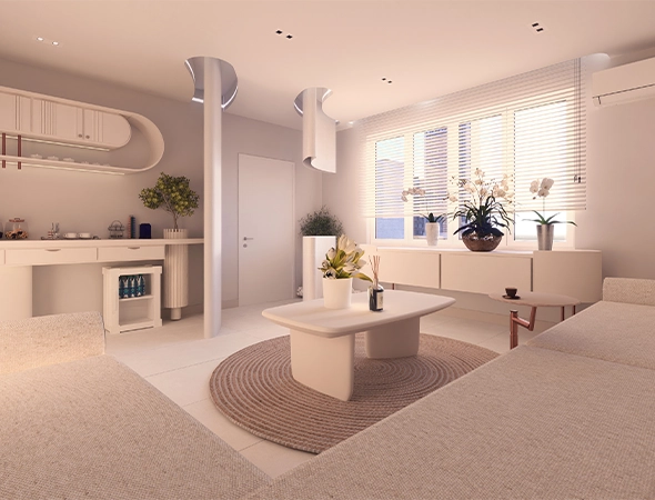 Özel üretim mobilyalar, yumuşak köşeler ve gizli aydınlatma unsurlarıyla mekânda akıcı bir bütünlük sağlandı.